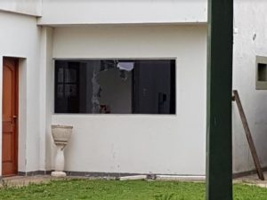 Esta mañana cuando el personal perteneciente a la agencia propiedad de Jorge Bin llegó al lugar ubicado sobre la colectora de la ruta 188 y la calle San Juan Bosco del barrio El Cruce, halló una ventana rota y las luces exteriores encendidas.