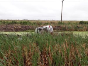 Esta tarde apenas pasadas las 13:00 hs. un automóvil Chevrolet Costa Classic en el que viajaban dos mujeres, Yanina Domicci y su hija, menor de edad, que lo hacían desde General Villegas, se despistó hacia la banquina, cuando intentaba sobrepasar un camión, deslizándose por el préstamo hasta el vuelco que lo dejó a escasos metros del alambrado, en un secotor con agua.