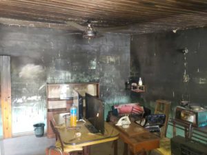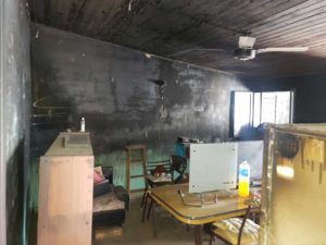 La casa requiere la reposición de una parte del techo, cielo raso, algunas aberturas y la pintura. la parte más afectada fue su habitación y el baño, el resto fue alcanzado por el humo que dejó su marca.