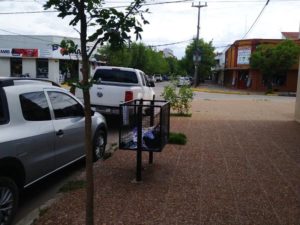 En el interior del mismo que se encuentra en Belgrano casi esquina Alberti, a una cuadra de la arteria principal de la ciudad, pleno centro, una importante cantidad de cajas con pastillas adentro se aprecian fácilmente. En el lugar hay un cartel mediante el cual se le solicita a los vecinos que la basura sea contenida en bolsas. Oídos sordos en este caso.