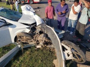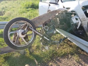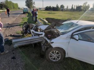 El siniestro se produjo a las 7:00 hs. cuando una moto Honda 150 cc. intentó cruzar la ruta hacia el cementerio, en ese momento el automóvil que la embistió circulaba en sentido Banderaló – Villegas proveniente de Gral. Acha con una familia a bordo.