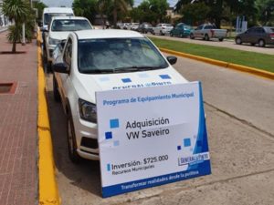 Se trata de una Renault Master, una Volswagen Saveiro y una Toyota Hilux que se encuentran estacionadas frente al palacio Municipal, cumpliendo con la rutina cada vez que se incorporan nuevos vehículos o maquinarias al parque vehicular.