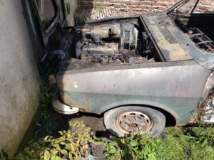 El Renaut 12 break se encontraba estacionado, pegado a la vivienda, sobre el patio delantero; junto a éste había otro vehículo, un Volkswagen Gol que alcanzó a ser desplazado hacia la vereda vitando que ambos se quemaran.