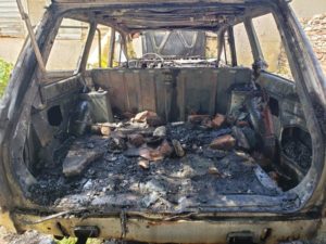 Una de las moradoras explicó a Distrito Interior que estaba recostada cuando sintió un fuerte olor a humos, similar al de cigarrillo y al asomarse vio el fuego en el auto. Rápidamente dieron aviso a Bomberos quienes intervinieron sofocando las llamas aunque no pudieron evitar la destrucción total.