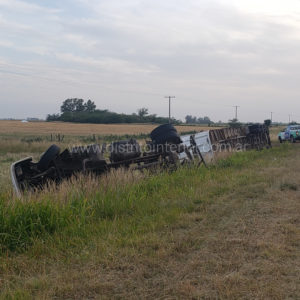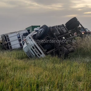 El chofer resultó ileso, no observan animales muertos, si suletos al costado de la ruta.