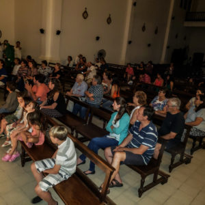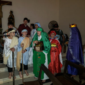 Con adoración a Jesús mediante canciones y oraciones que cuentan con la participación de Maxi Larghi, los niños y niñas que representan a los diferentes personajes en el nacimiento del Niño Dios, hacen su paso y se pide por los rexien nacidos, las familias, los matrimonios, etc.