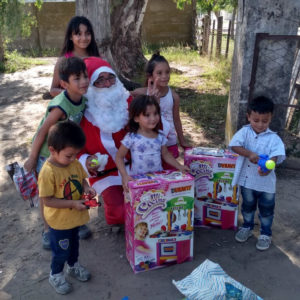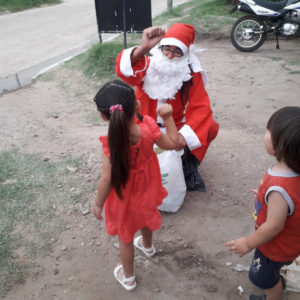 Muchos niños de Gral. Villegas recibieron en sus casas de cuerpo presente a Papá Noel que les entregó sus regalos.