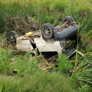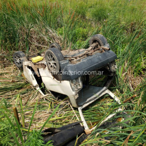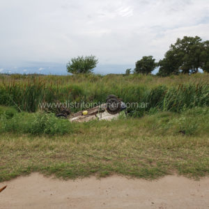 Esta tarde dos vecinos encontró un automóvil volcado con las cuatro ruedas hacia arriba adentro de un zanjón que se encuentra ubicado junto a las vías del Ferrocarril en el camino que conduce a Elordi.