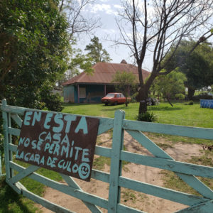 Al verlo nos detuvimos y hablamos con uno de los integrantes de la familia Ríos que explicó a Distrito Interior la razón del mensaje en el cartel colocado en la tranquera de la casa.