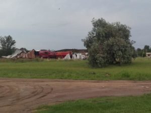 Emanuel Fernandez, Jefe de Bomberos de la localidad informó a Distrito Interior que con la luz del día la localidad fue mostrando las consecuencias del viento que al igual que en Bunge produjo serios destrozos en un galpón del Ferrocarril al que derribó donde ne su interior había maquinas agrícolas.