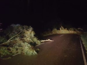 El tendido eléctrico, principalmente la línea de media tensión que suministra al pueblo se encuentra fuera de servicio producto del colapso de 11 columnas entre Bunge y Charlone.