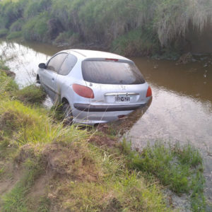 Por causas que se desconocen el auto se despistó y cayó dentro de uno de los zanjones de desagüe con las consecuencias materiales que se observa.