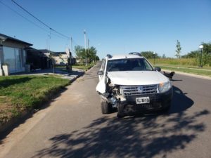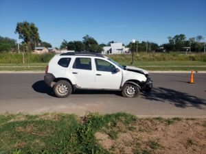 Esta mañana alrededor de las 7:00 hs. una Renault Duster con dos ocupantes abordo subió a la vereda circulando por unos metros con una rueda ésta y la otra en la calle hasta impactar contra una columna del alumbrado público a la que derribó por completo.