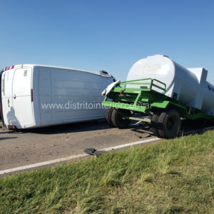 Los vehículos involucrados son un tractor Valtra que tiraba una cisterna, el que manejaba Daniel German Jauregui, de 48 años de Gral. Pinto. El implemento es propiedad de Saralegui.