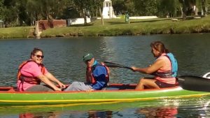 Hoy miércoles por primera vez los concurrentes al Centro de Día, la mayoría de ellos por primera vez, experimentaron navegar y remar en la laguna. En algunos casos lo hicieron en una canoa con un instructor, paseando y en otros ellos mismos remaron.