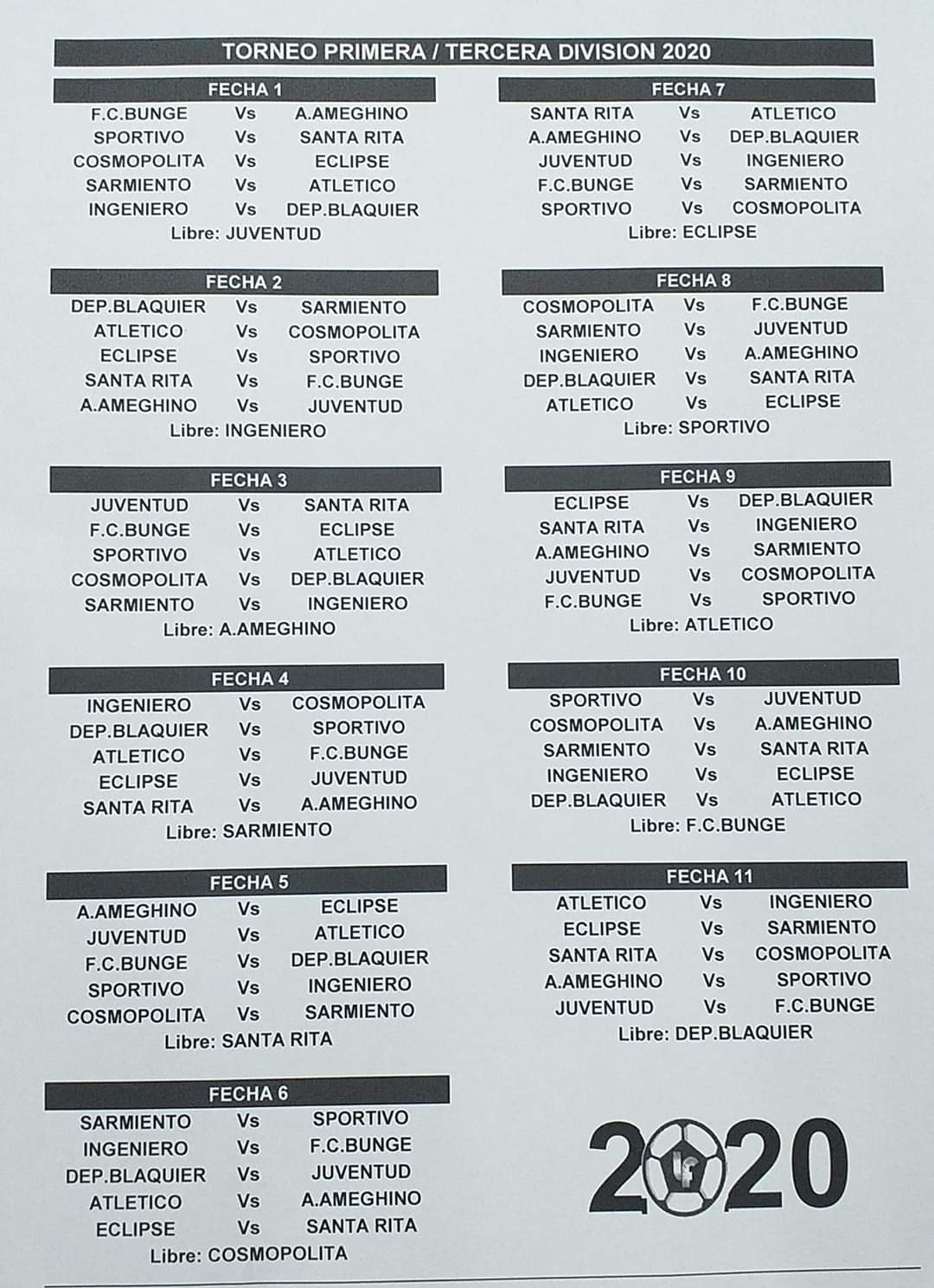 El 15 de marzo dará inicio el torneo Apertura, los partidos se jugarán 14:30 hs, 3° División y a las 16:30, 1°. El torneo consagrará a un finalista, luego se jugará una liguilla por zonas que al finalizar dejará un ganador que se enfrentará con el ganador de la segunda liguilla y de esta manera otro finalista junto al del torneo Apertura y Clausura para jugar y coronar al campeón del año.