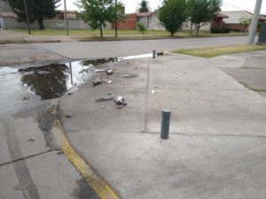 Al observar se advierte que podría un vehículo haber doblado muy cerrado contra el cordón provocando el daño.